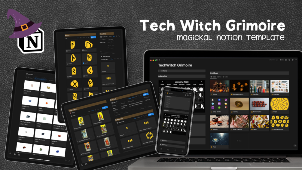 The TechWitch Grimoire is a full dashboard in Notion for the modern Witch.